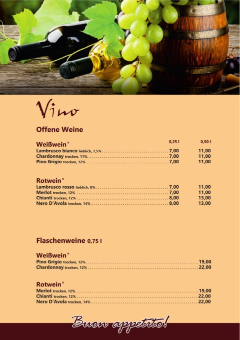 Pino Grigio trocken, 12% ............................. .......... 7,00 11,00