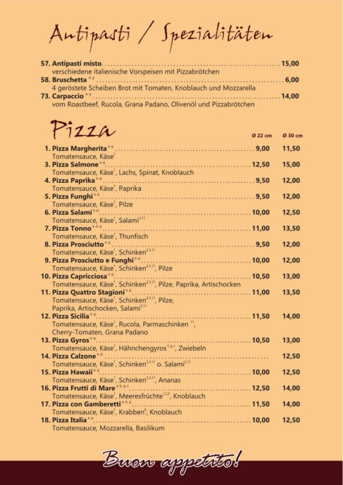 1. Pizza Margherita a, g ............................................... 9,00 11,50